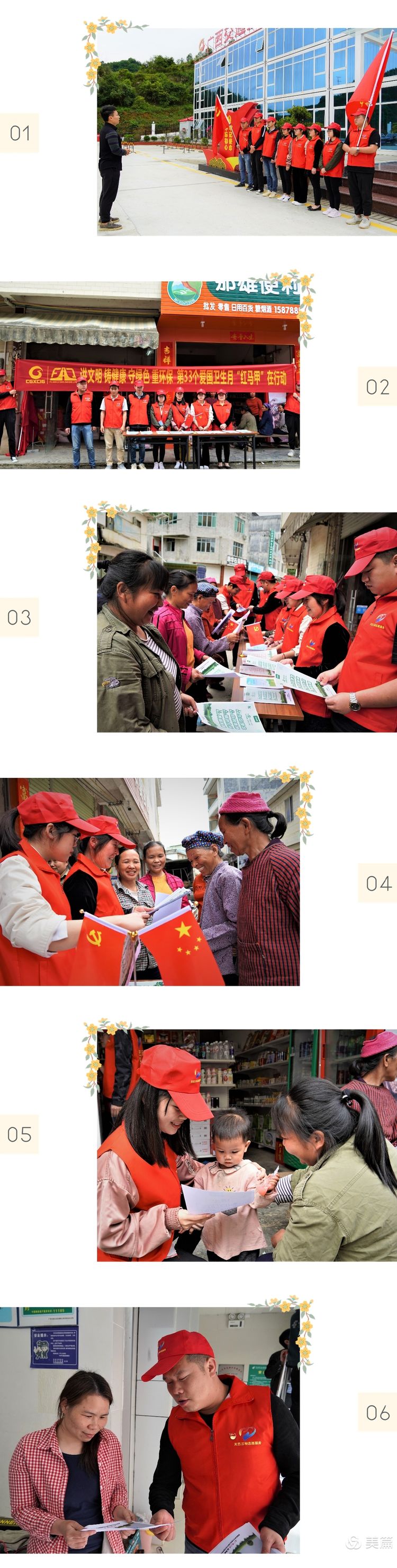 當(dāng)天,天巴三標(biāo)“紅馬甲”志愿服務(wù)者們來(lái)到長(zhǎng)洲鎮(zhèn),通過(guò)向群眾派發(fā)愛(ài)國(guó)衛(wèi)生月傳單以及現(xiàn)場(chǎng)講解宣傳冊(cè)等方式,傳播、強(qiáng)化“文明健康 綠色環(huán)保”的生活理念。由于近期持續(xù)降雨,百樂(lè)“紅軍村”的主干道泥濘不堪,影響當(dāng)?shù)厝罕姷某鲂校凹t馬甲”們充分發(fā)揮志愿者服務(wù)精神,積極作為清掃路面,現(xiàn)場(chǎng)黨旗飄揚(yáng),得到了周邊群眾的一致認(rèn)可。 |