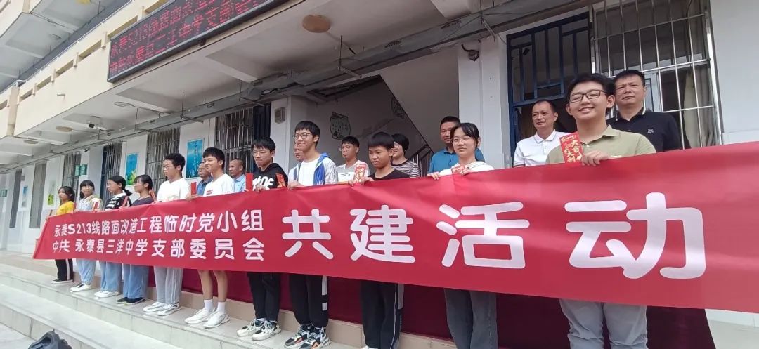 2022年9月26日,永泰S213線路面改造工程臨時(shí)黨小組與永泰縣三洋中學(xué)黨支部舉行一次別開生面的黨建共建活動(dòng)。參加這次活動(dòng)的有永泰縣公路局領(lǐng)導(dǎo)、永泰S213線路面改造工程臨時(shí)黨小組成員以及三洋中學(xué)師生。本次助力愛心活動(dòng),永泰縣縣S213線路面改造工程臨時(shí)黨小組為三洋中學(xué)捐助籃橋架一副、LED顯示屏一幅、表彰優(yōu)秀學(xué)生15人、修繕食堂后面路面等?;顒?dòng)由三洋中學(xué)支部副書記吳清傳主持,共有四個(gè)議程。